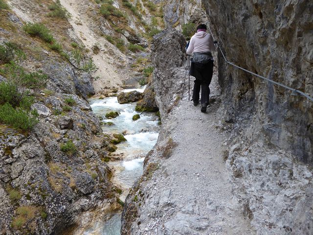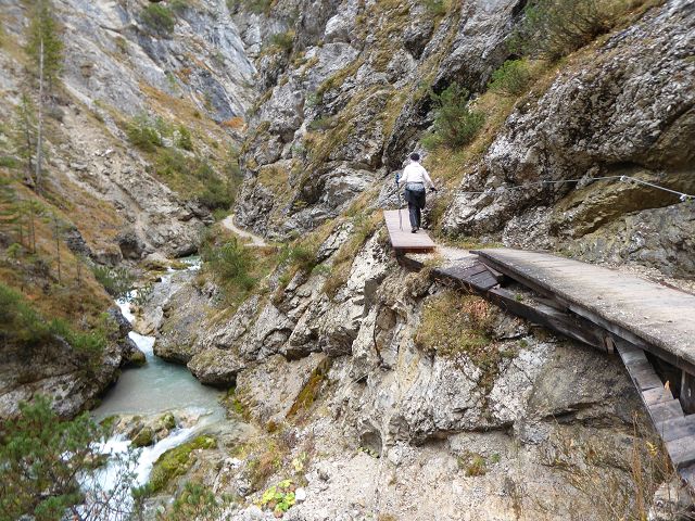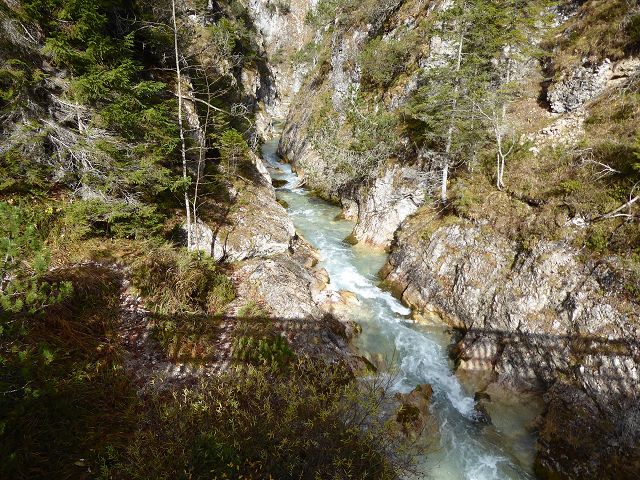 Bald zweigten wir rechts ab und wanderten rechts der Isar Taleinwärts, Richtung Klamm. Es war herrlich ruhig, in knapp 4 Stunden begegneten uns 3 Menschen. Die Klamm selbst ist wildromantisch und wir freuten uns ob der Ruhe beim Durchqueren.