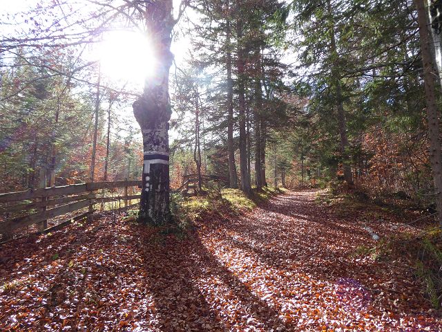Den Rückweg traten wir über den Hochwaldsteig (Weg 57) an und querten weit unten im Tal auf die Fahrstraße nach Scharnitz.