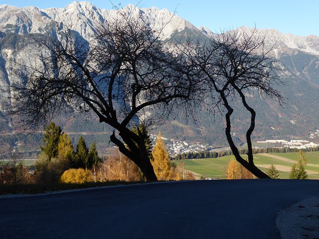 Ich stolperte über die (noch unfahrbare) Götzner Schiabfahrt weiter ins Tal und nahm zum Abschluss die Impression der knorrigen Bäume im herbstlichen Antlitz mit nach Hause.
