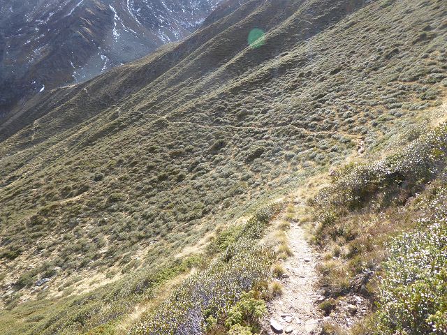 Kurz unterhalb des Gipfels zweigt ein steiler Steig ab, der weiter zum Hocheder führt. Gerade noch wenig genug Schnee, um diesen Abschnitt nicht unangenehm zu machen, lag.